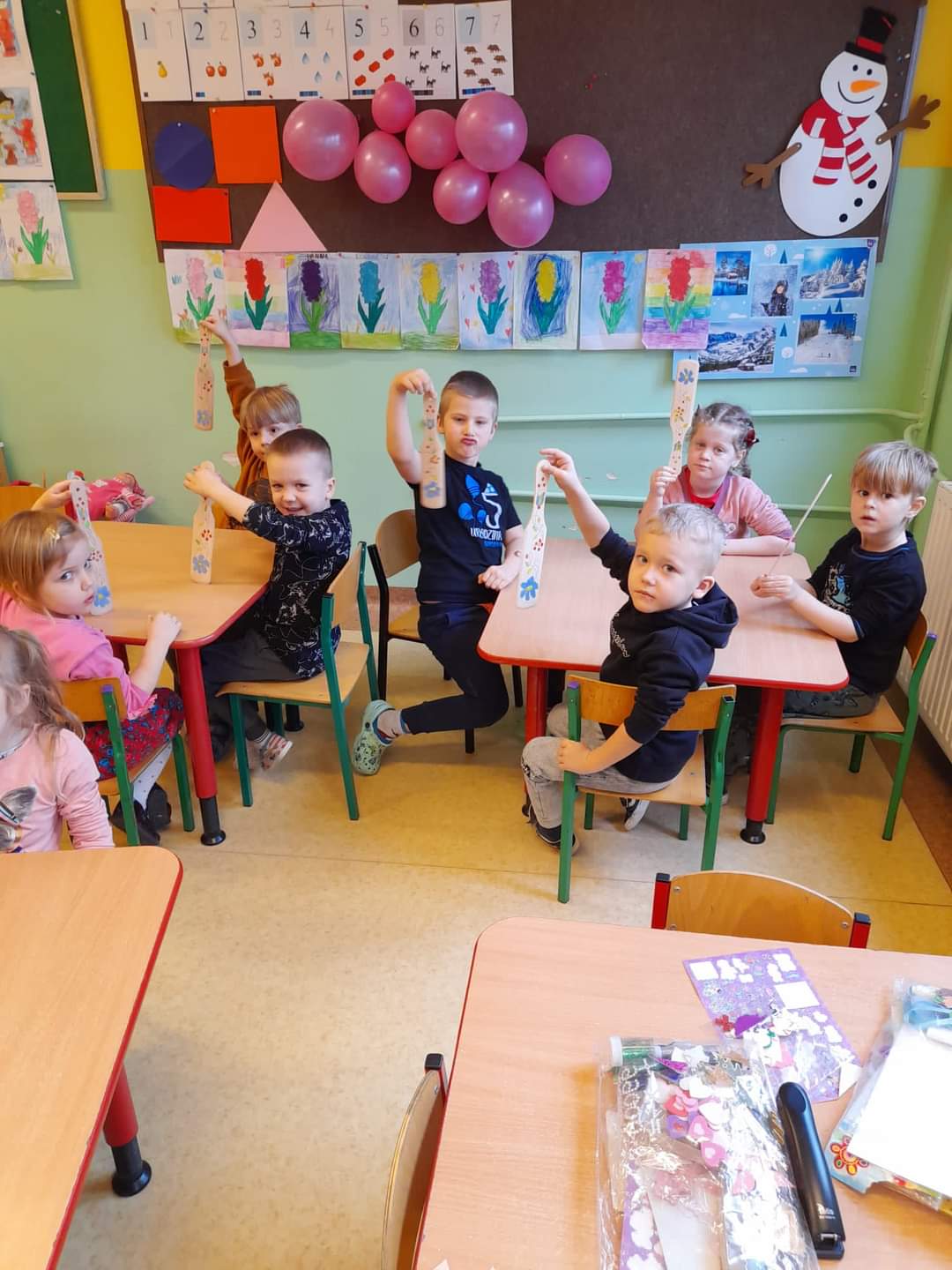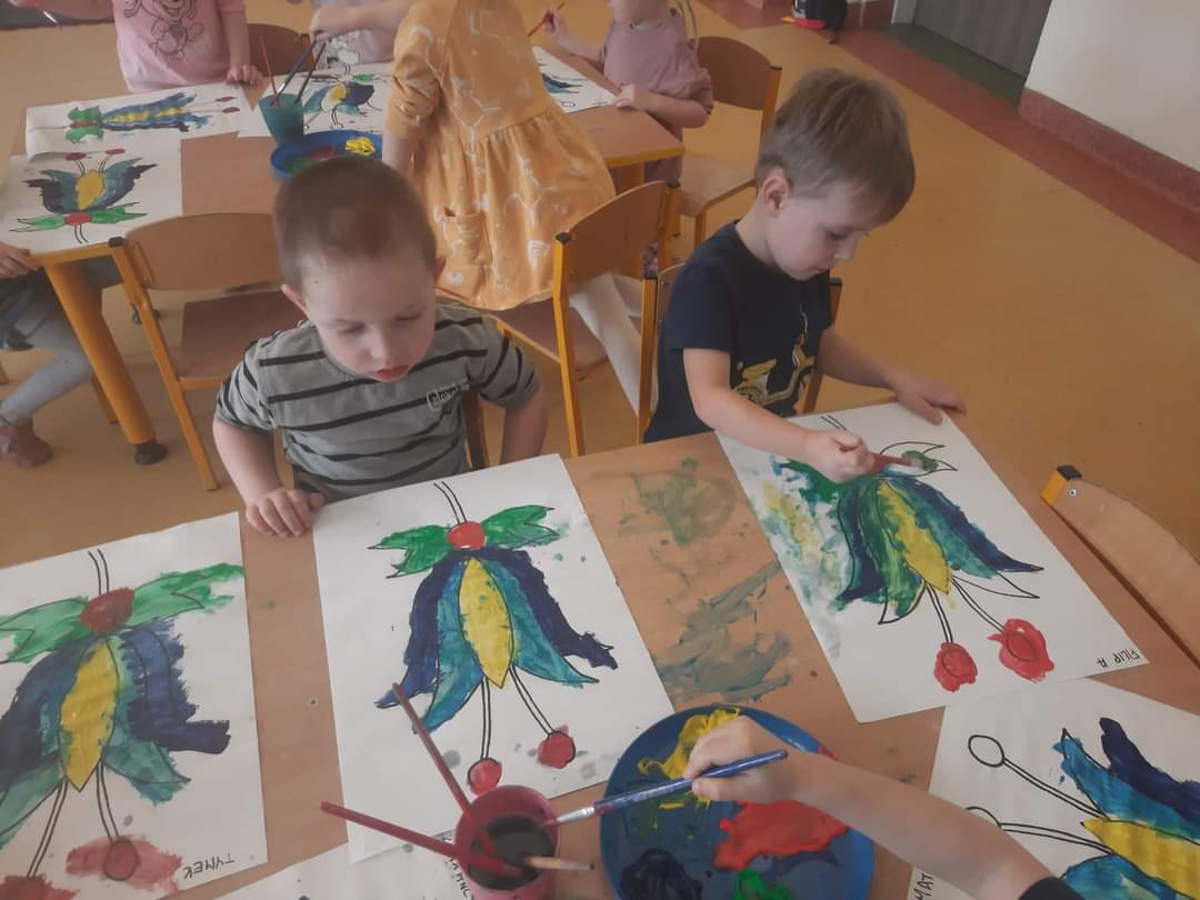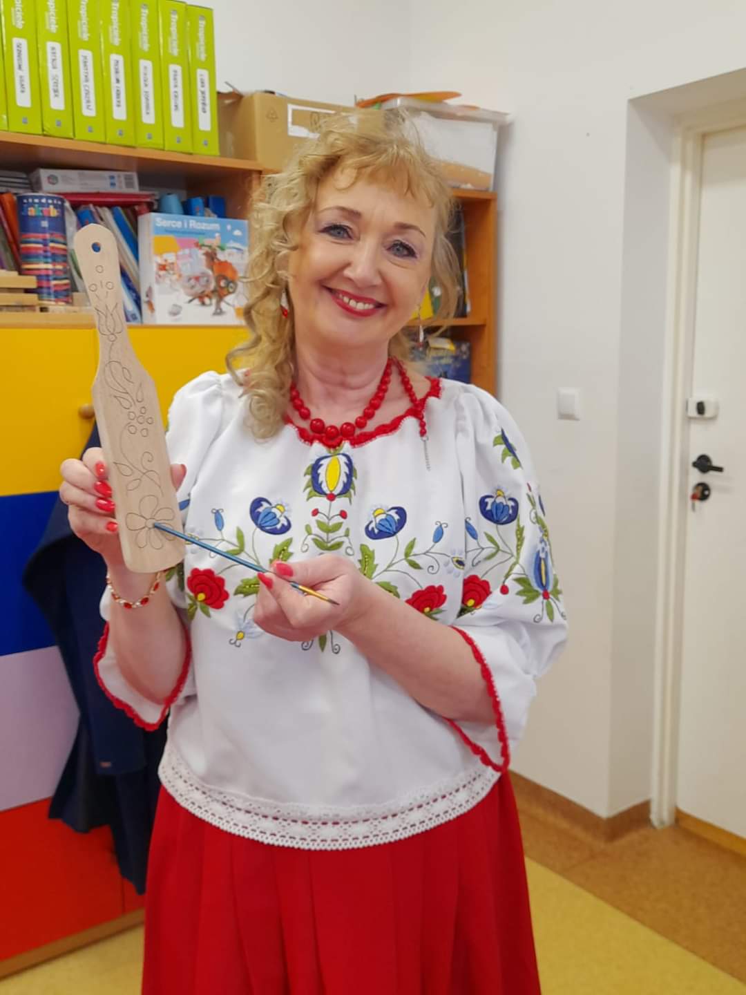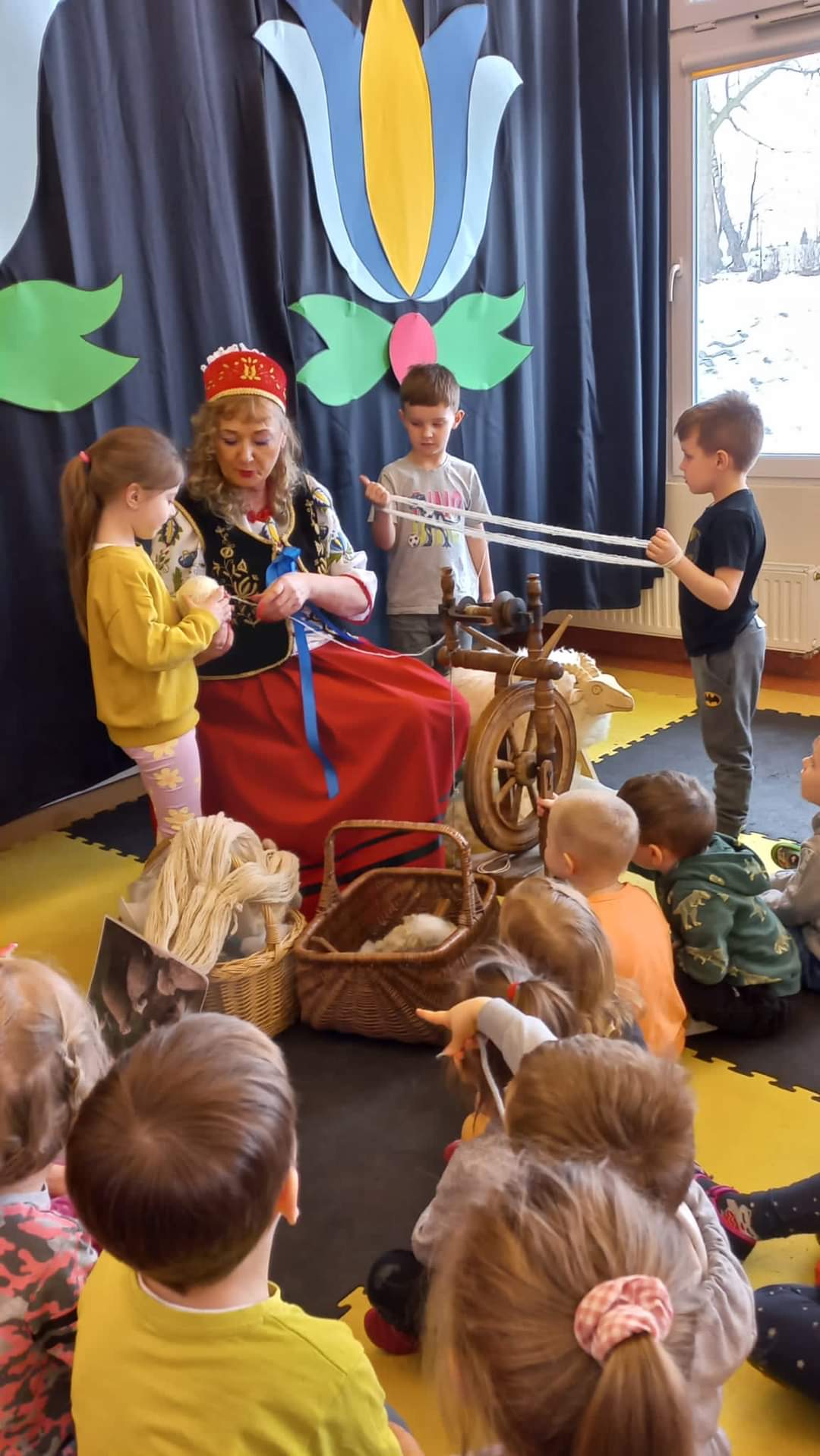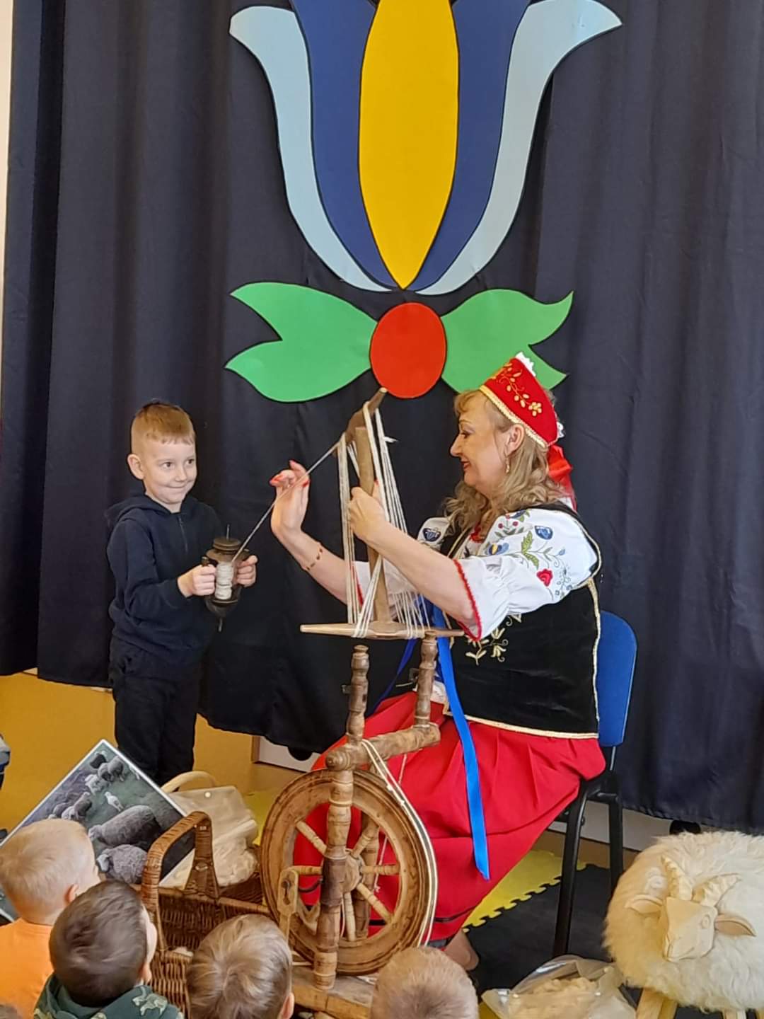 Pierwszego dnia dzieci spotkały się z Bożeną Kupper-Krzyżanowską, która przeprowadziła pokaz przędzenia wełny oraz warsztaty plastyczne. Dzieci samodzielnie malowały wzory kaszubskie na drewnianych łopatkach.