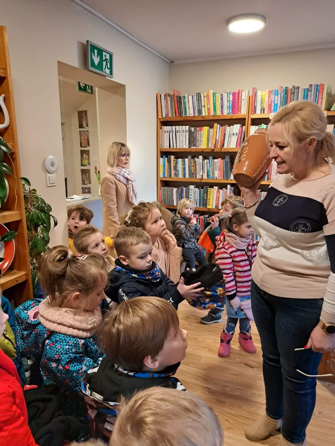 Drugiego dnia każda grupa odwiedziła Bibliotekę Publiczną w Przodkowie, by obejrzeć wystawę ceramiki kaszubskiej. Eliana Oczk pokazała również dzieciom, jakie książki w języku kaszubskim znajdują się w księgozbiorze biblioteki.