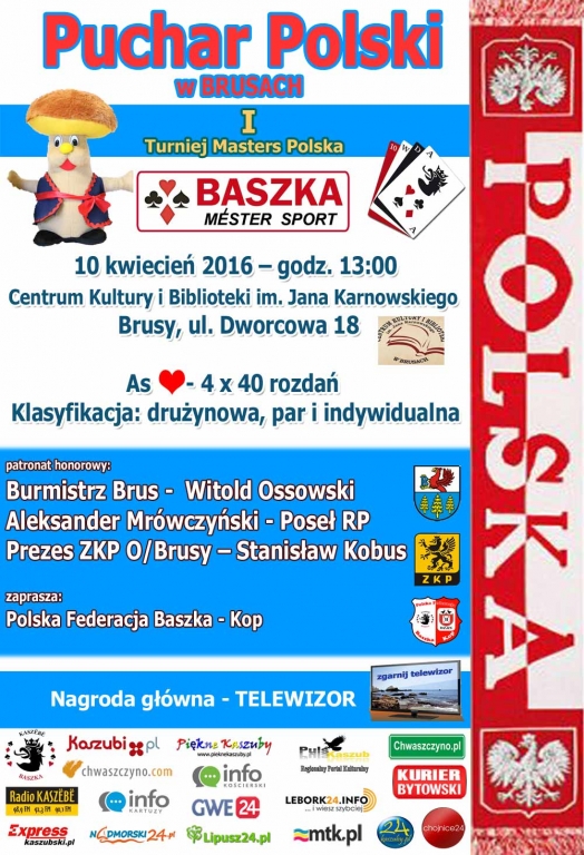 Przed miłośnikami gier karcianych Puchar Polski w Baśkę. I Turniej Masters Polska już 10 kwietnia w Centrum Kultury w Brusach.