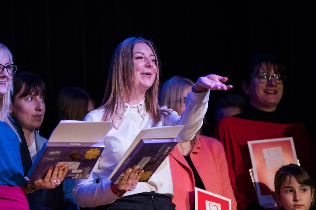 Obecnych czekała także niespodzianka. Wolontariusze przygotowali piosenkę o rejonie Kartuzy, którą zaprezentowali wspólnie na gali. Tuż po tym, na scenie pojawił się pan Ludwik którego, w minionej edycji, również odwiedzili wolontariusze Szlachetnej Paczki. Bardzo emocjonalnie opowiedział o projekcie, a także podziękował wolontariuszom za wykonaną przez nich pracę. Zagrał na akordeonie polskie kolędy, a dołączyli do niego wolontariusze i zebrana publiczność. Wszyscy razem zaśpiewali m.in. „Dzisiaj w Betlejem” oraz „Bóg się rodzi”.