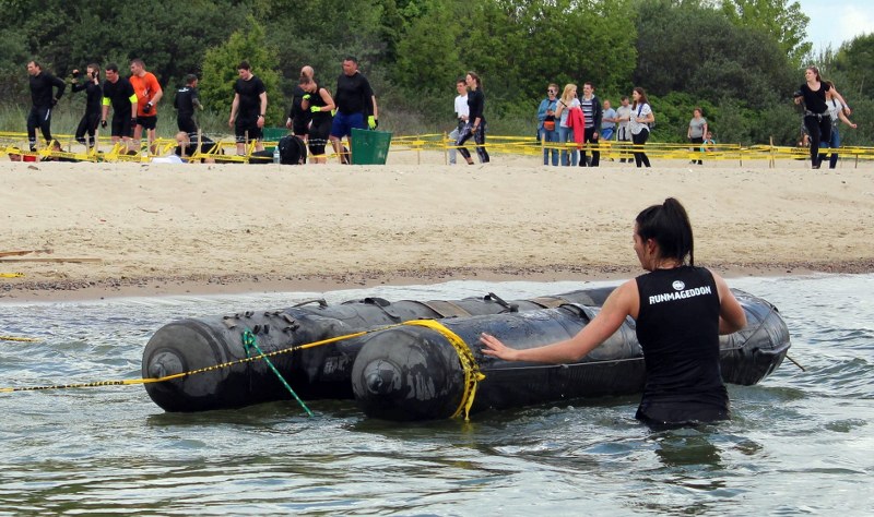 Dwa tysiące biegaczy miało do pokonania kilka wodnych przeszkód. Musieli między innymi brodzić w wodach zatoki dźwigając opony, przepłynąć pod przeszkodą, skoczyć z liny w toń zatoki. Woda w Bałtyku jeszcze zimna, więc przyjemnie nie było.