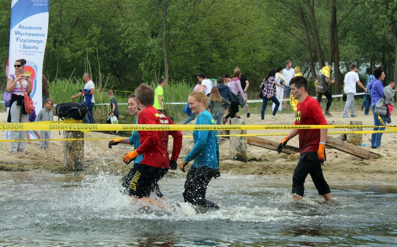 Dwa tysiące biegaczy miało do pokonania kilka wodnych przeszkód. Musieli między innymi brodzić w wodach zatoki dźwigając opony, przepłynąć pod przeszkodą, skoczyć z liny w toń zatoki. Woda w Bałtyku jeszcze zimna, więc przyjemnie nie było.