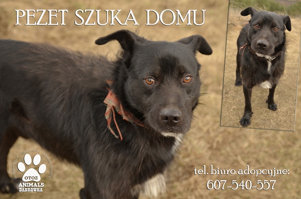 Pezet trafił do schroniska 9 lutego 2013 r. z Gniewina. Na początku był bardzo wystraszony, mimo że nie wykazywał agresji, to trudno było z nim nawiązać kontakt, bo chował się na widok człowieka. Teraz to już inny psiak. Nadal jest ostrożny, ale też radosny i chętny do zabawy. Pezet to nie jest piesek, który wskakuje w ramiona każdemu odwiedzającemu schronisko. Potrzebuje czasu, by zaufać. Dlatego też trudniej jest mu podbić serca ludzi adoptujących psy. Fot.: OTOZ Animals Dąbrówka