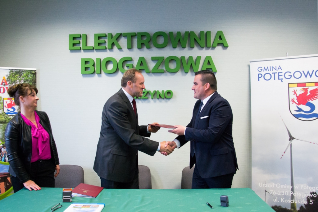 Umowa została podpisana podczas spotkania, które odbyło się we wtorek, 13 czerwca na terenie biogazowni w Darżynie. W uroczystości wzięli udział pracownicy Urzędu Gminy Potęgowo i Zakładu Usług Publicznych, Bogdan Chwal – wiceprzewodniczący Rady Gminy Potęgowo, MarcinTomaszewski – prezes Zarządu Nadmorskich Elektrowni Wiatrowych Darżyno Sp. z o.o., Kazimierza Kurkowskiego – projektant sieci ciepłowniczej oraz Paweł Kraus – współautor studium wykonalności projektu.