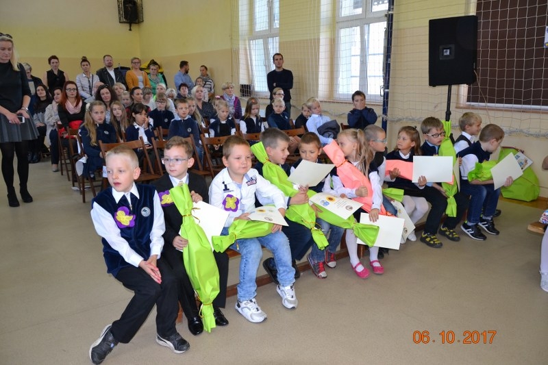 Gratulacjom i prezentom nie było końca, wychowawczynie klas panie: Beata Formella, Barbara Adamczyk, Paulina Stobba-Kur i Helena Kukielska wręczyły dyplomy Pierwszoklasisty, uczniowie otrzymali upominki od swoich starszych kolegów z klas trzecich i od ukochanych rodziców. Do gratulacji dołączyli również zaproszeni goście, Burmistrz Gminy Żukowo Wojciech Kankowski, który wśród podarunków dla dzieci umieścił znaki odblaskowe w trosce o ich bezpieczeństwo. Życzenia przekazane zostały również przez przewodniczącą Rady Rodziców Sabinę Rogalską-Antosik , dyrektor OKIS Aleksandrę Rogalewską i radnego – Tyberiusza Tredera.