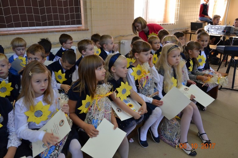 Gratulacjom i prezentom nie było końca, wychowawczynie klas panie: Beata Formella, Barbara Adamczyk, Paulina Stobba-Kur i Helena Kukielska wręczyły dyplomy Pierwszoklasisty, uczniowie otrzymali upominki od swoich starszych kolegów z klas trzecich i od ukochanych rodziców. Do gratulacji dołączyli również zaproszeni goście, Burmistrz Gminy Żukowo Wojciech Kankowski, który wśród podarunków dla dzieci umieścił znaki odblaskowe w trosce o ich bezpieczeństwo. Życzenia przekazane zostały również przez przewodniczącą Rady Rodziców Sabinę Rogalską-Antosik , dyrektor OKIS Aleksandrę Rogalewską i radnego – Tyberiusza Tredera.