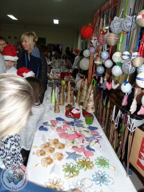 Dużym powodzeniem cieszyły się stoiska z fantami. Wśród nich znalazły się prace wykonane przez dzieci i rodziców, a także nauczycieli, takie jak: bombki, choinki, stroiki i inne świąteczne dekoracje. Koncertowa kawiarenka sprzyjała miłej i iście świątecznej atmosferze. Można było kupić ciasto, wypić kawę, herbatę i z refleksją pomyśleć o tych, dla których ten koncert został zorganizowany.