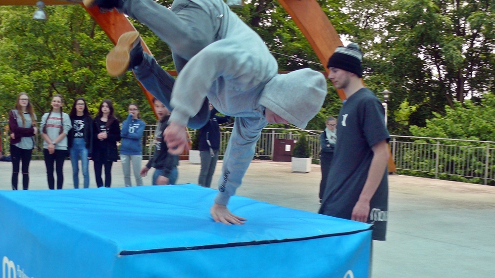 Zajęcia z parkour przygotowali dla nich instruktorzy z Klubu Sportowego Movement. Na 5 stanowiskach przygotowano przeszkody, oraz uczono dzieci jak efektownie je pokonywać. Warsztaty poprzedził pokaz umiejętności członków grupy.