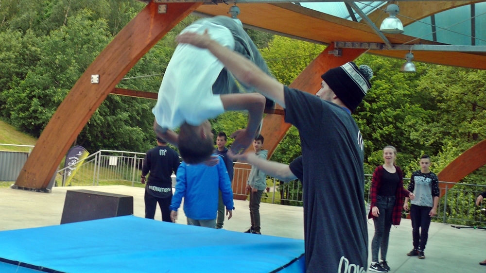 Zajęcia z parkour przygotowali dla nich instruktorzy z Klubu Sportowego Movement. Na 5 stanowiskach przygotowano przeszkody, oraz uczono dzieci jak efektownie je pokonywać. Warsztaty poprzedził pokaz umiejętności członków grupy.