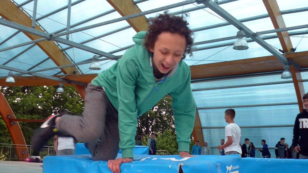 Zajęcia z parkour przygotowali dla nich instruktorzy z Klubu Sportowego Movement. Na 5 stanowiskach przygotowano przeszkody, oraz uczono dzieci jak efektownie je pokonywać. Warsztaty poprzedził pokaz umiejętności członków grupy.