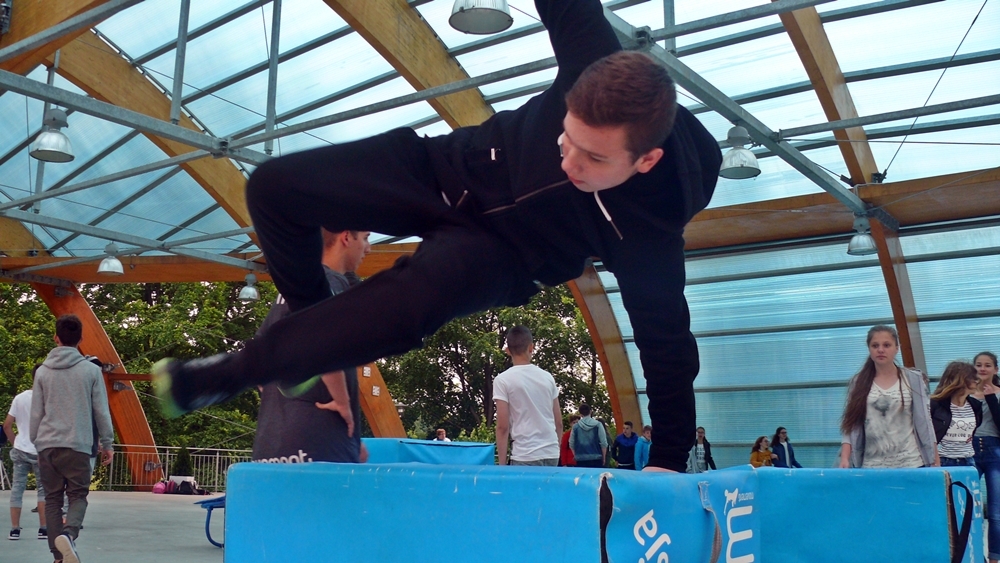 Zajęcia z parkour przygotowali dla nich instruktorzy z Klubu Sportowego Movement. Na 5 stanowiskach przygotowano przeszkody, oraz uczono dzieci jak efektownie je pokonywać. Warsztaty poprzedził pokaz umiejętności członków grupy.