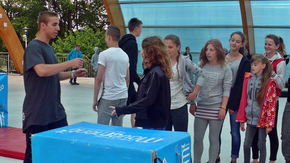 Zajęcia z parkour przygotowali dla nich instruktorzy z Klubu Sportowego Movement. Na 5 stanowiskach przygotowano przeszkody, oraz uczono dzieci jak efektownie je pokonywać. Warsztaty poprzedził pokaz umiejętności członków grupy.