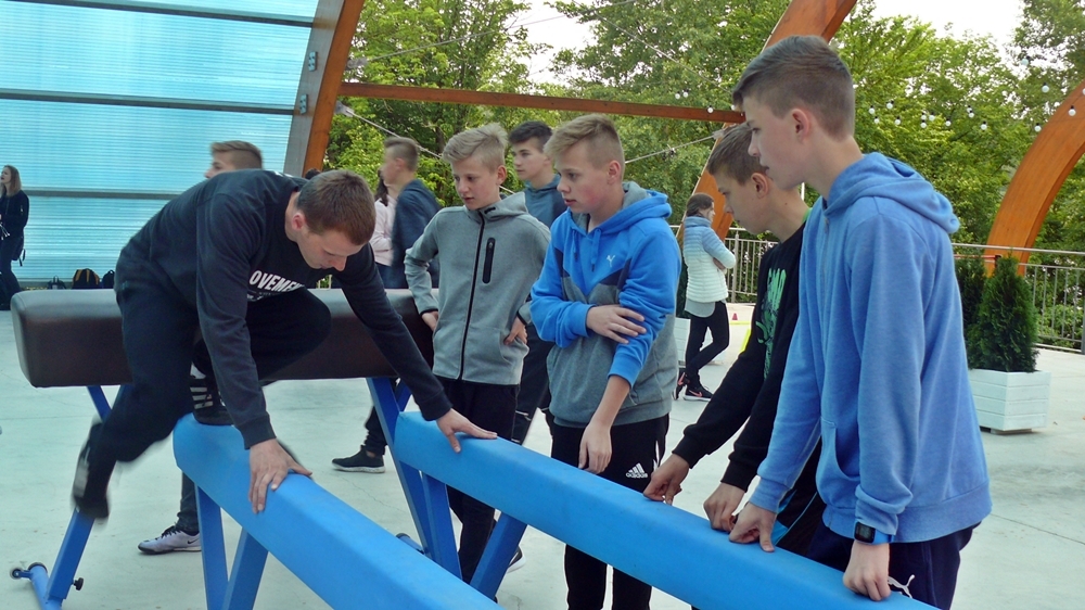 Zajęcia z parkour przygotowali dla nich instruktorzy z Klubu Sportowego Movement. Na 5 stanowiskach przygotowano przeszkody, oraz uczono dzieci jak efektownie je pokonywać. Warsztaty poprzedził pokaz umiejętności członków grupy.