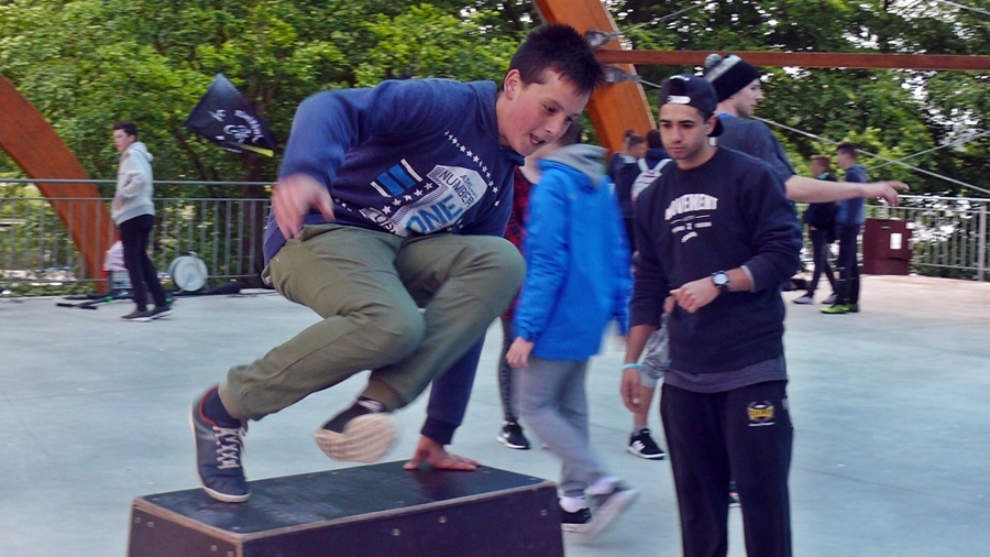Zajęcia z parkour przygotowali dla nich instruktorzy z Klubu Sportowego Movement. Na 5 stanowiskach przygotowano przeszkody, oraz uczono dzieci jak efektownie je pokonywać. Warsztaty poprzedził pokaz umiejętności członków grupy.