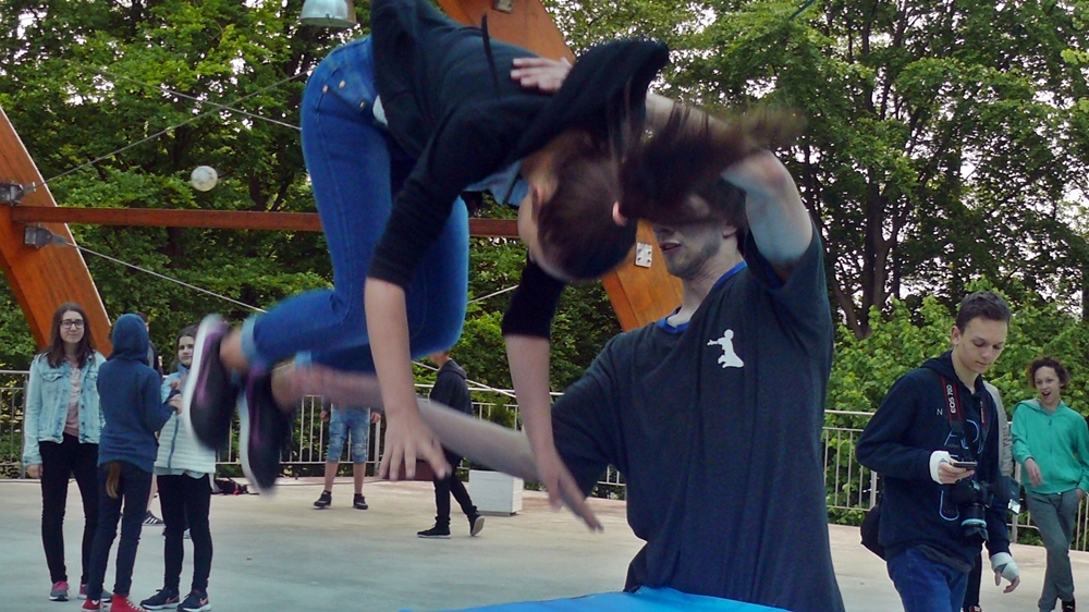 Zajęcia z parkour przygotowali dla nich instruktorzy z Klubu Sportowego Movement. Na 5 stanowiskach przygotowano przeszkody, oraz uczono dzieci jak efektownie je pokonywać. Warsztaty poprzedził pokaz umiejętności członków grupy.