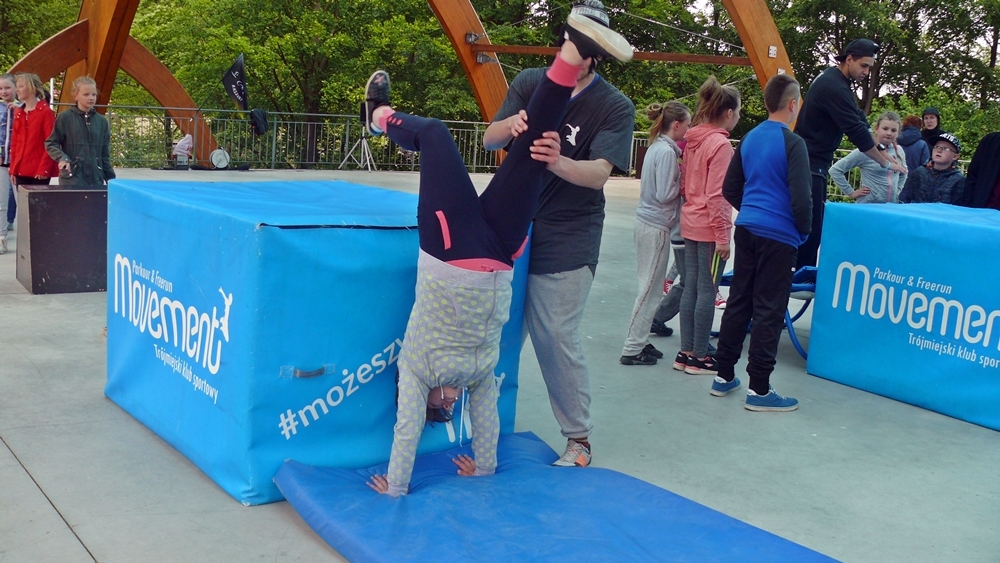 Zajęcia z parkour przygotowali dla nich instruktorzy z Klubu Sportowego Movement. Na 5 stanowiskach przygotowano przeszkody, oraz uczono dzieci jak efektownie je pokonywać. Warsztaty poprzedził pokaz umiejętności członków grupy.