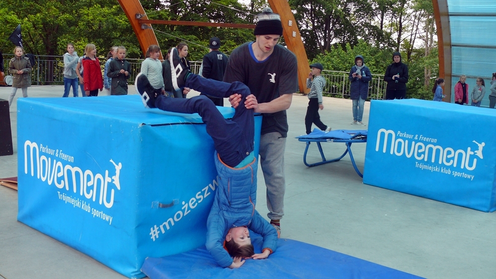 Zajęcia z parkour przygotowali dla nich instruktorzy z Klubu Sportowego Movement. Na 5 stanowiskach przygotowano przeszkody, oraz uczono dzieci jak efektownie je pokonywać. Warsztaty poprzedził pokaz umiejętności członków grupy.
