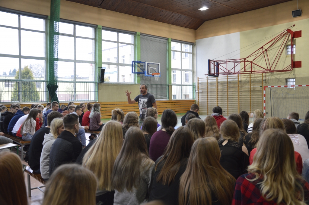 W trakcie spotkania Andrzej Sowa podzielił się z swoją historią z młodzieżą, niezwykle barwnie opowiadał o  drodze do uzależnienia i wychodzenia z nałogu. Mówił również o swojej książce „Ocalony. Ćpunk w Kościele” będącej symbolem zmiany jaka może nastąpić w człowieku. Ta przemiana była głównym tematem spotkania z młodzieżą naszej szkoły.