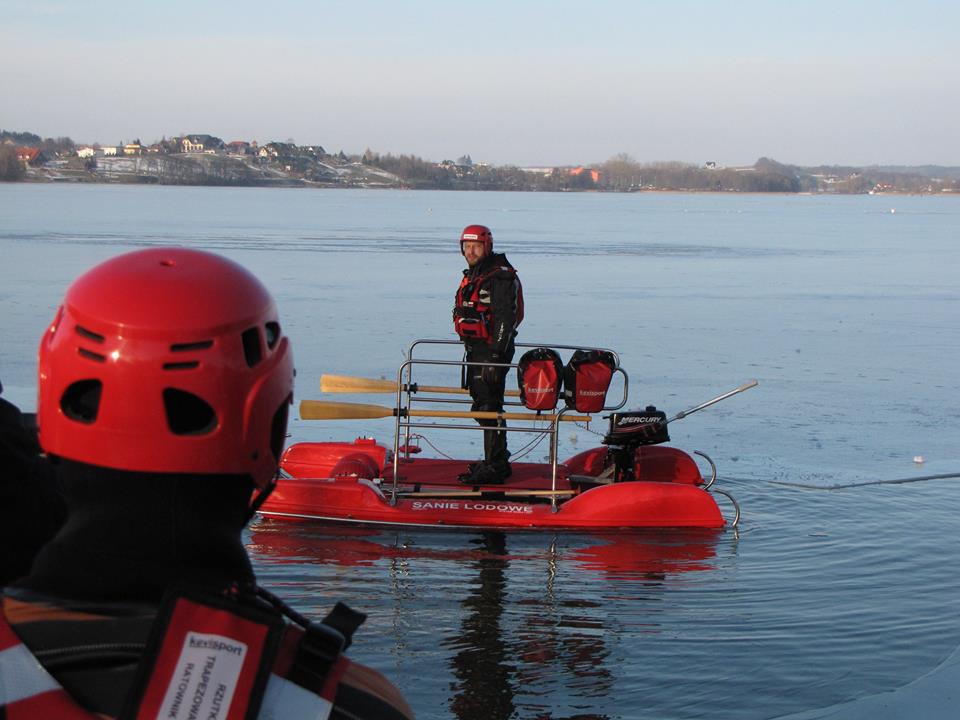 Strażacy omawiali i ćwiczyli manewrowanie na wodzie i lodzie, techniki ratownictwa lodowego, sondowanie lodu, udzielanie pierwszej pomocy ofiarom hipotermii itp.