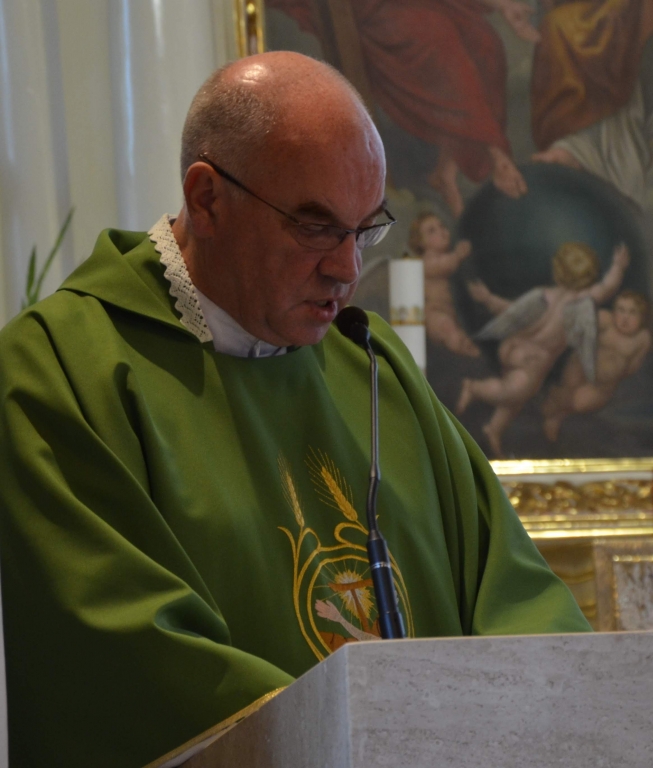 Na zakończenie mszy świętej sulęczyński oddział zrzeszenia złożył życzenia i kwiaty ks. kanonikowi Andrzejowi Karlińskiemu z okazji święta proboszczów.