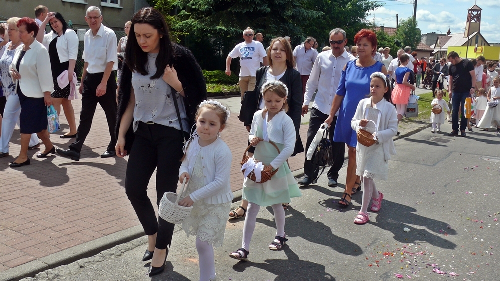 Po mszy świętej, która odbyła się w kościele św. Wojciecha, procesja przeszła ulicami: Piłsudskiego, Gdańską, Parkową, i Klasztorną. Spora grupa mieszkańców przybyła, aby uczcić uroczystość Najświętszego Ciała i Krwi Pańskiej.