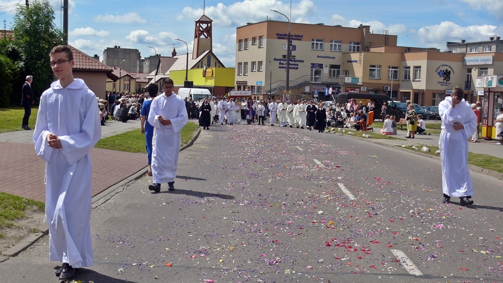 Po mszy świętej, która odbyła się w kościele św. Wojciecha, procesja przeszła ulicami: Piłsudskiego, Gdańską, Parkową, i Klasztorną. Spora grupa mieszkańców przybyła, aby uczcić uroczystość Najświętszego Ciała i Krwi Pańskiej.