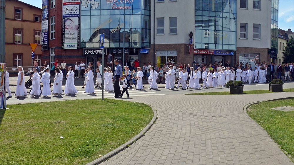 Po mszy świętej, która odbyła się w kościele św. Wojciecha, procesja przeszła ulicami: Piłsudskiego, Gdańską, Parkową, i Klasztorną. Spora grupa mieszkańców przybyła, aby uczcić uroczystość Najświętszego Ciała i Krwi Pańskiej.
