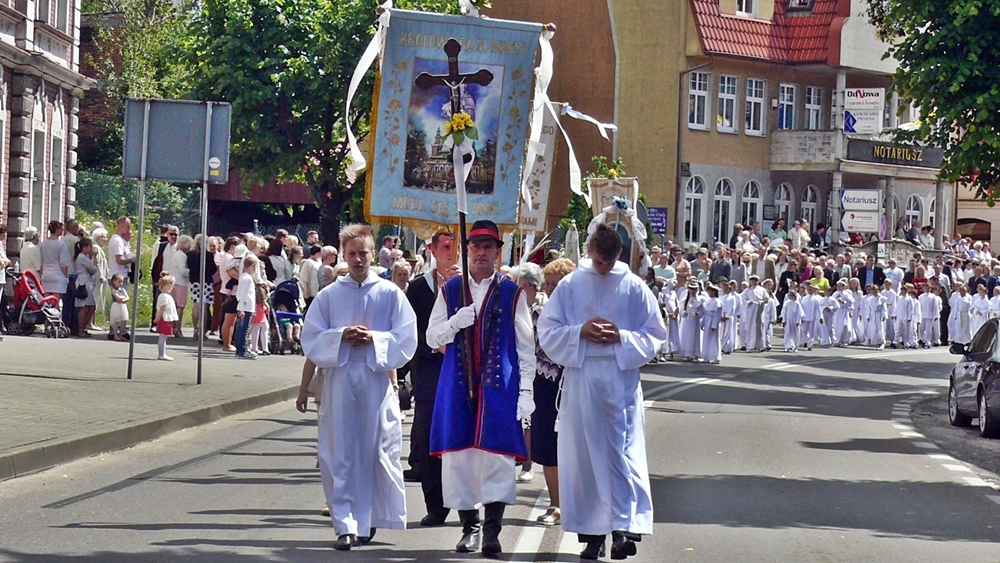 Po mszy świętej, która odbyła się w kościele św. Wojciecha, procesja przeszła ulicami: Piłsudskiego, Gdańską, Parkową, i Klasztorną. Spora grupa mieszkańców przybyła, aby uczcić uroczystość Najświętszego Ciała i Krwi Pańskiej.