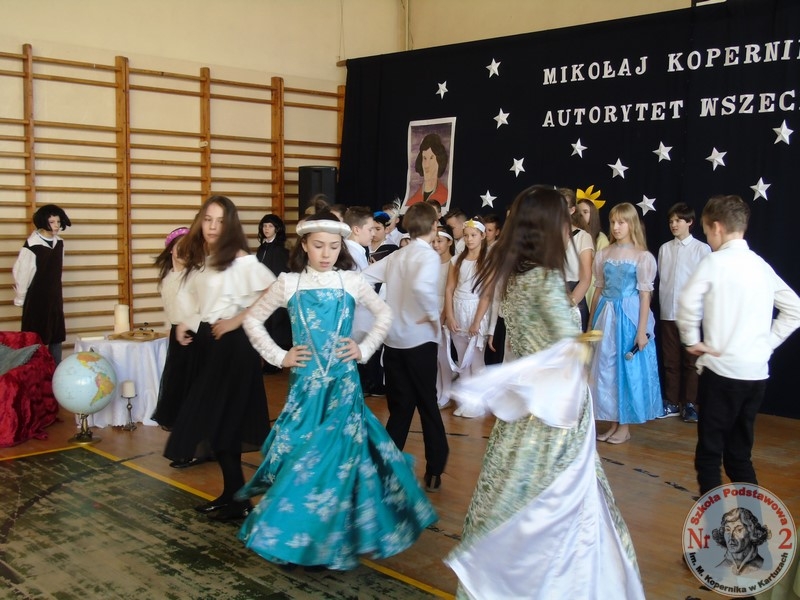 Patron szkoły stał się wzorem do naśladowania dla jej uczniów i absolwentów. W tym roku akademię przygotowali uczniowie klas VI pod opieką Hanny Grzenkowskiej, Ewy Derbich oraz nauczycielki muzyki – Doroty Klasa. Młodzi aktorzy przebrani w stroje z epoki współczesnej Kopernikowi słowem, piosenką i tańcem przybliżyli postać wybitnego astronoma, który dzięki swym odkryciom naukowym  złotymi zgłoskami zapisał się w panteonie Wielkich Odkrywców doby renesansu. W postać młodego Kopernika wcielił się Borys Płotka, Kopernika w podeszłym wieku zagrał Michał Cylke, a matką była Laura Fularczyk (uczniowie klasy VIb).