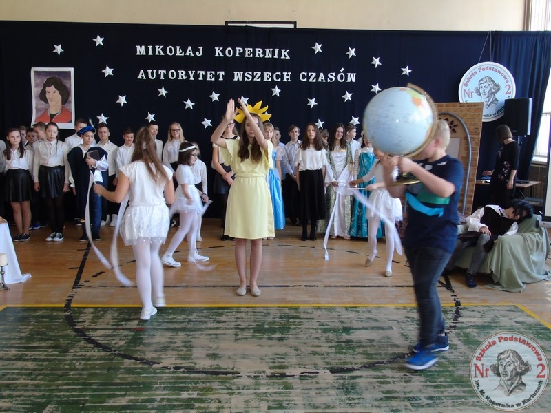 Patron szkoły stał się wzorem do naśladowania dla jej uczniów i absolwentów. W tym roku akademię przygotowali uczniowie klas VI pod opieką Hanny Grzenkowskiej, Ewy Derbich oraz nauczycielki muzyki – Doroty Klasa. Młodzi aktorzy przebrani w stroje z epoki współczesnej Kopernikowi słowem, piosenką i tańcem przybliżyli postać wybitnego astronoma, który dzięki swym odkryciom naukowym złotymi zgłoskami zapisał się w panteonie Wielkich Odkrywców doby renesansu. W postać młodego Kopernika wcielił się Borys Płotka, Kopernika w podeszłym wieku zagrał Michał Cylke, a matką była Laura Fularczyk (uczniowie klasy VIb).