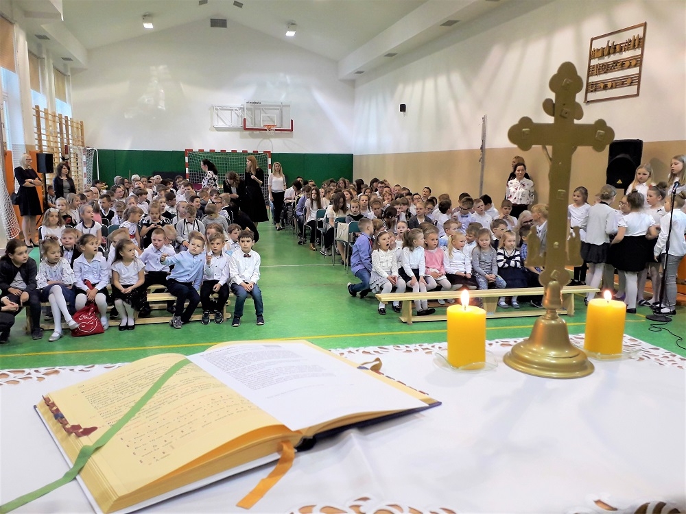 Ksiądz Marek w swym kazaniu, w formie katechezy, przybliżył zebranym postać Patrona. W formie dialogowej z uczniami przypomniał najważniejsze chwile z życia polskiego papieża. Na koniec nauczył uczestników Mszy św. piosenki o patronie „ Przyjacielu nasz bardzo Cię kochamy, Przyjacielu nasz bądź na zawsze z nami, Przyjacielu nasz Janie Pawle Drugi ˂Wielki˃” Dla osób, które nie uczestniczyły w części religijnej obchodów, odbywały się zajęcia w świetlicy szkolnej.