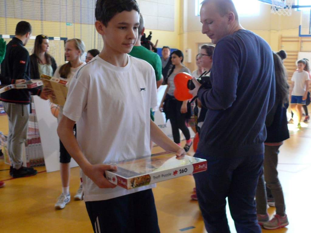 –Dzieci są specyficzne w każdej szkole – zauważył Kacper Lachowicz. – Dzieciaki w Elblągu, gdzie koszykówka jest znacznie bardziej popularna, były na tych zajęciach mega skupione. Tutaj koncentrujemy się na tym aby zarazić te dzieciaki koszykówką. Przygotowaliśmy 6 stacji na Szkolnym Baskecie, i tam gdzie dzieciaki mają na przykład zasłonięte oczy widać że świetnie się bawią. Chcemy im pokazać, że sport to nie jest tylko pocenie się i nerwy. Tylko po prostu dobra zabawa. Fajne jest to, że dzieciaki są w swoim środowisku. Nie idą do obcego klubu, tylko ćwiczą tutaj ramie w ramie z koleżankami i kolegami. Są jednak otoczone dzieciakami z innych szkół, i to jest bardzo ciekawe że na początku wstydzą się, trzymają tylko tych których znają, a później z każdą minuta się rozluźniają i bawią się razem – dodał Lachowicz.