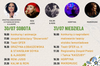 Szykuje się imprezowa dalsza część lata w „stolicy Kaszub”, bowiem już 30 i 31 lipca w kartuskim Parku Solidarności odbędzie się XXXI Jarmark Kaszubski. Na uczestników wydarzenia czekać będzie mnóstwo atrakcji, a na scenie zobaczymy m. in. Reni Jusis, Kalwi & Remi oraz Mikromusic. Nie zabraknie oczywiście stoisk kaszubskich twórców ludowych. Zobacz plakat!