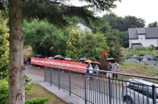 Somonino. Wierni z Borowa z transparentem czekali na biskupa. Ten nie zareagował