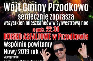Wójt Gminy Przodkowo Andrzej Wyrzykowski zaprasza na wspólne, sylwestrowe, świętowanie! W tym dla mieszkańców i gości Gminy Przodkowo zaśpiewa Andre.