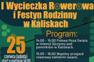 Mieszkańcy Kalisk i nie tylko w minioną sobotę uczestniczyli w rodzinnym festynie, połączonym z leśną wycieczką rowerową oraz mszą św. w intencji ojczyzny. Nie zabrakło licznych atrakcji dla najmłodszych, ponadto serwowane były różnego rodzaju pyszności – od domowych wypieków (KGW Jezioranki z Bącza) po najróżniejsze pizze od „Kucharza po Sąsiedzku”. Organizatorzy zapowiadają, że kolejna edycja wydarzenia już za rok. Zobacz fotorelację!