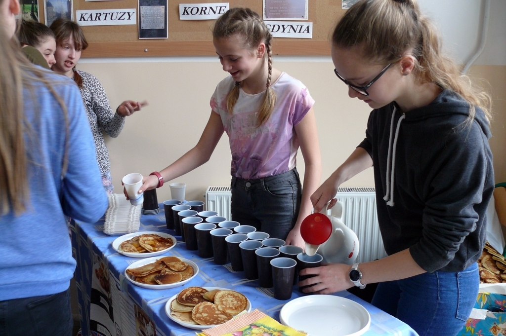 We wtorek zapachniała cała szkoła, gdyż nadszedł uwielbiany przez dzieci Dzień Naleśnika. Uczniowie mieli okazję spróbować wyrobów nauczycieli, kolegów oraz rodziców. Oczywiście do naleśników podano uwielbiany na wyspach brytyjskich napój-herbatę.
