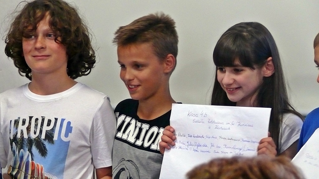 Uczennica I LO w Kartuzach przyniosła listy, opowiadanie i wiersze swoich kolegów z klasy.