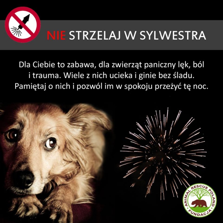 Fajerwerki są tradycją Sylwestra i nie da się tego zmienić, jeśli jednak jest taka możliwość to warto pomóc zwierzakom, w tym trudnym dla nich czasie.Na facebooku pojawiają się profile pt. „ Nie strzelaj w Sylwestra”, które zyskują co raz większe grono zwolenników. Twórcy tych wydarzeń apelują : „Dźwięk strzelającej petardy jest dla psa, czy kota jak wybuchająca niedaleko bomba – dla człowieka. Nie tylko powoduje silny strach, ale może nawet uszkodzić słuch. Psy słyszą w większym zakresie częstotliwości niż ludzie, dlatego Noc Sylwestrowa jest dla nich szczególnym koszmarem. Kilka minut zabawy dla człowieka, to może być długotrwała trauma dla zwierzaków, które często ze strachu uciekają.