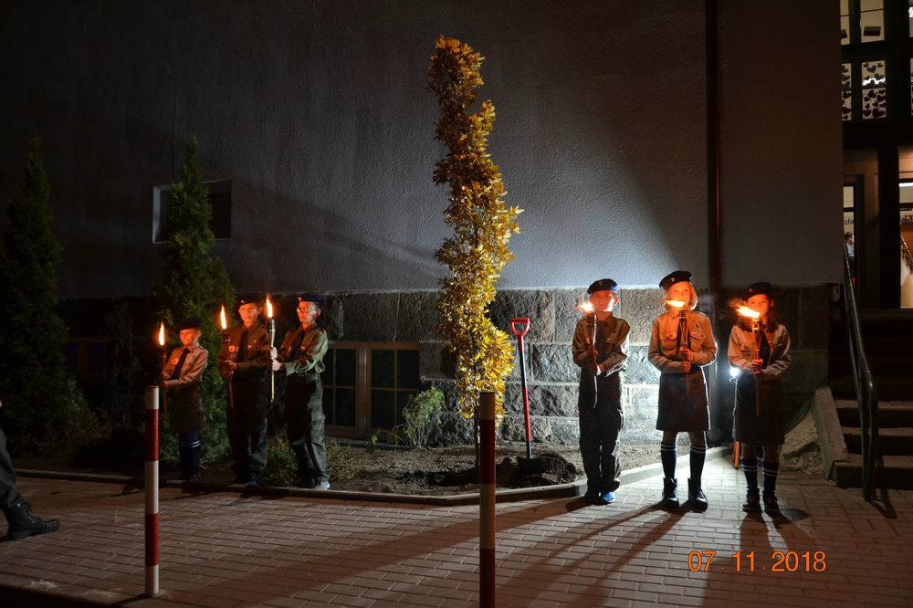 Wizyta w SP im. Obrońców Wybrzeża była dla zaproszonych okazją do partycypowania w uroczystym posadzeniu nowego drzewa, dębu –  symbolicznie przywołującego siłę i odporność, które to cechy pozostają w centrum uwagi każdego patrzącego wstecz na dzieje Polski. Wielu gości zapisało na pamiątkę miłe słowa w szkolnej kronice. Organizatorzy poczęstowali przybyłych rogalami marcińskimi, które stanowiły słodką kropkę nad „i” tego listopadowego wieczoru.