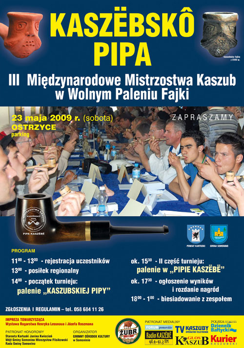 Kaszubski Klub Kolekcjonerów Fajki „KASZËBSKÔ PIPA” zaprasza na X Jubileuszowe Międzynarodowe Mistrzostwa Kaszub w Wolnym Paleniu Fajki. Odbędą się one 28 maja w Ośrodku „Wodny Świat” w Ostrzycach.