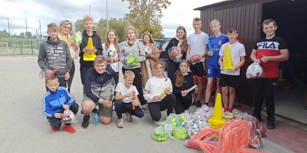 Osiem profesjonalnych płotków lekkoatletycznych, dziesięć małych płotków, osiem piłek do piłki nożnej, osiem piłek do futsalu, osiem piłek do koszykówki, osiem piłek do siatkówki, osiem piłek do piłki ręcznej, materace gimnastyczne, wózek na sprzęt sportowy pałeczki sztafetowe oraz drabinka koordynacyjna poszerzyły wyposażenie niewielkiej szkoły.