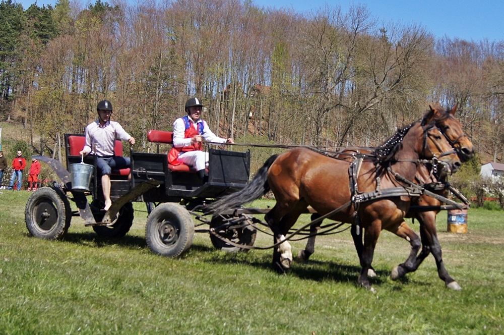 15 dwuosobowych zespołów brało udział w konkursie powożenia bryczkami Wiśta Wio. Ich zadaniem było pokonanie toru przeszkód, gdzie musieli m.in.: wykonać slalom, nabrać do wiadra wody z jeziora, oraz wypić jak najszybciej kufel piwa.
