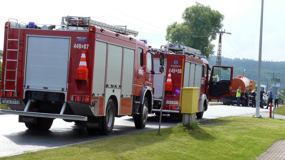 Stacja paliw jest nieczynna, a na miejscu wciąż pozostają 3 wozy strażackie. Ruch odbywa się już normalnie.