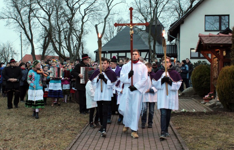 Drogę krzyżową poprowadził ks. Damian Klajst z Chmielna. Rozważania do poszczególnych stacji czytali kaszubscy działacze. Muzyką i śpiewem wiernym towarzyszył zespół dziecięcy Tuchlińskie Skrzaty.