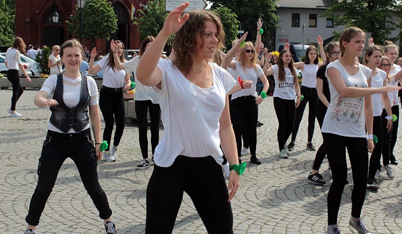 Flash mob na Rynku w wykonaniu młodzieży szkół ponadgimnazjalnych z Kartuz, Somonina, Żukowa, Sierakowic i Przodkowa zainaugurował XV Targi Nauki i Kultury w Kartuzach. Zobacz zdjęcia!