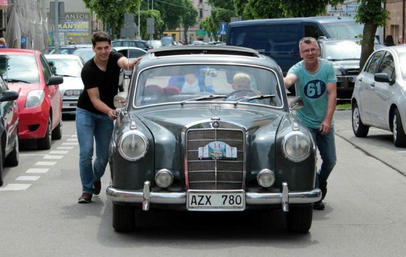 Rajd przez Kaszuby to dla wiekowych aut prawdziwe wyzwanie. A to co im najbardziej szkodzi to… korki i paliwo kiepskiej jakości. Przekonały się o tym dwie załogi. W jednym z aut zagotowała się woda w chłodnicy, a inny trzeba było popchać.