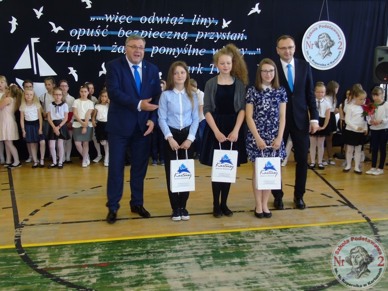 Na zakończeniu pojawił się burmistrz Kartuz Mieczysław Grzegorz Gołuński, wręczył on nagrody najzdolniejszym uczniom.