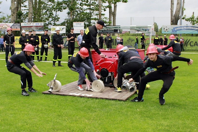 Zawody strażackie w Przodkowie rozpoczęły się o godz. 14 sztafetą, w której wystartowały zarówno drużyny czynne jak i młodzieżowe.  Młodsi i starsi ochotnicy musieli wykazać się ogólną sprawnością fizyczną, biegnąc po równoważni, przeskakując dwumetrowy rów, poruszając się slalomem między tyczkami, czy przeskakując ściankę. Po zakończeniu sztafety ten sam tor przeszkód pokonali zawodnicy indywidualni.