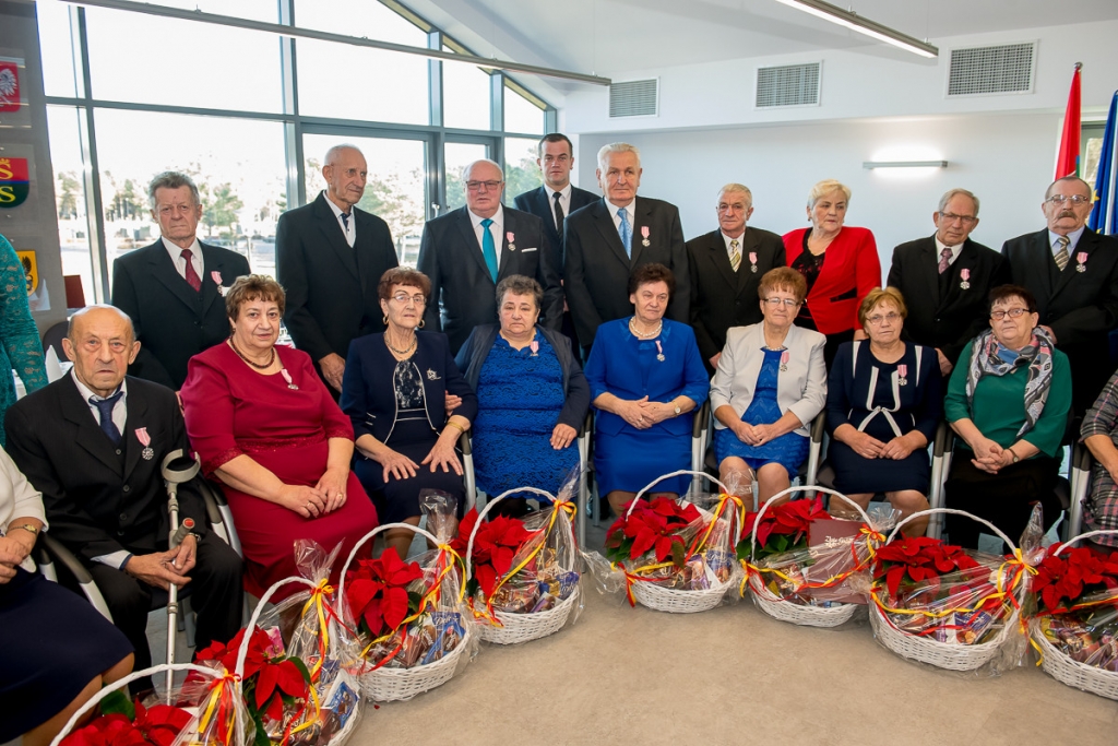 Z tej okazji w Urzędzie Gminy Stężyca odbyło się uroczyste spotkanie z dostojnymi Jubilatami. Uroczystego aktu dekoracji medalami nadanymi przez Prezydenta Rzeczypospolitej Polskiej dla osób, które przeżyły 50 lat w jednym związku małżeńskim, w dowód społecznego uznania dla trwałości małżeństwa i rodziny dokonał Wójt Gminy Stężyca Tomasz Brzoskowski.